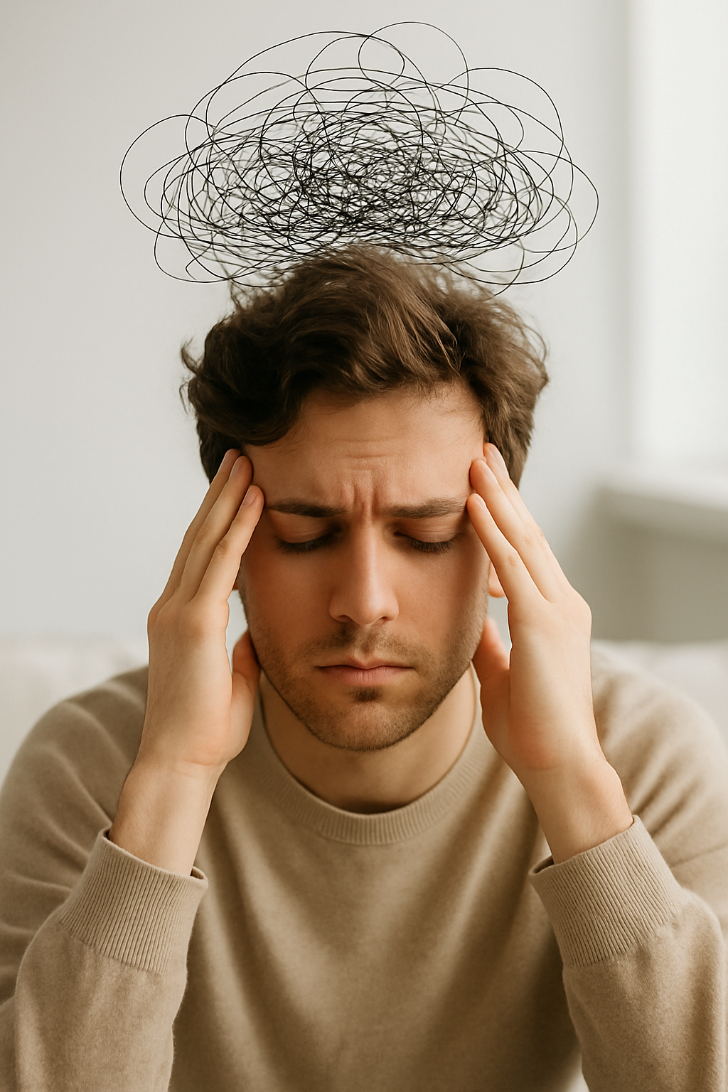 Ele surge quando o cérebro tenta compensar a dificuldade de foco acelerando os pensamentos, o que acaba gerando cansaço, autocrítica e sensação constante de “mente cheia”.
